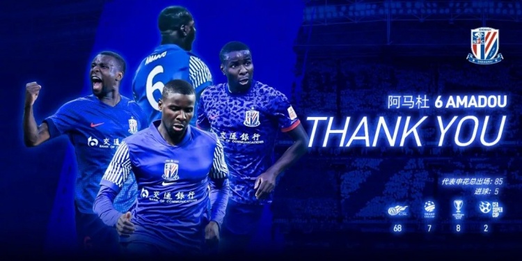 感谢阿马杜效力申花期间为球队做出的贡献,祝愿他未来的职业生涯一切顺利!